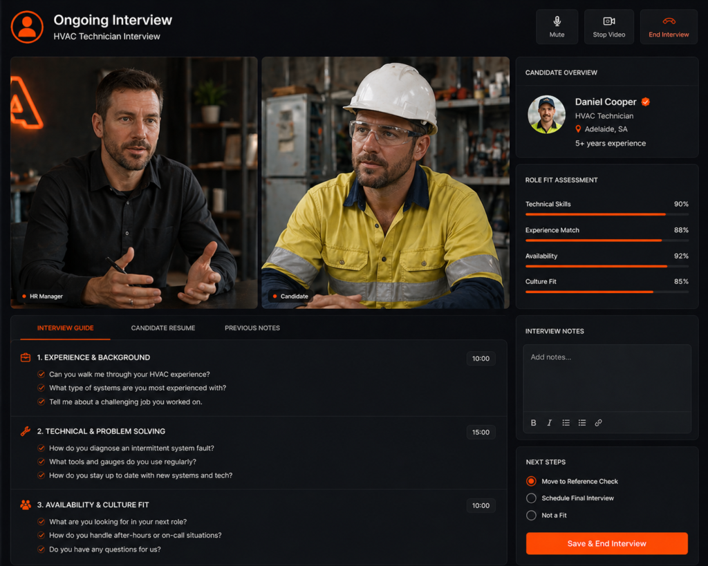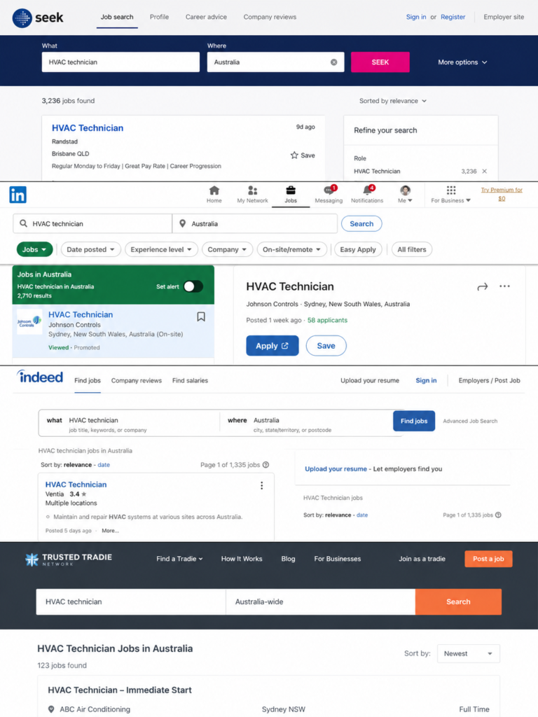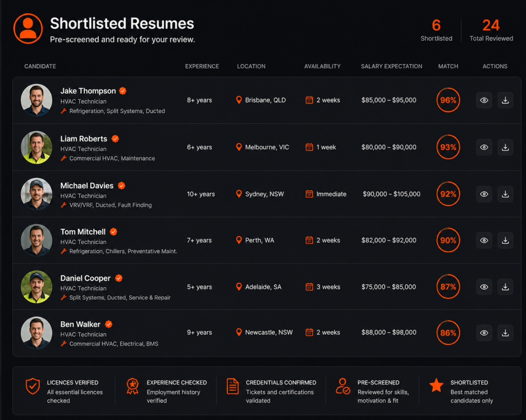 We search active and passive HVAC talent across Australia, including technicians who are not applying to job ads but may move for the right role.